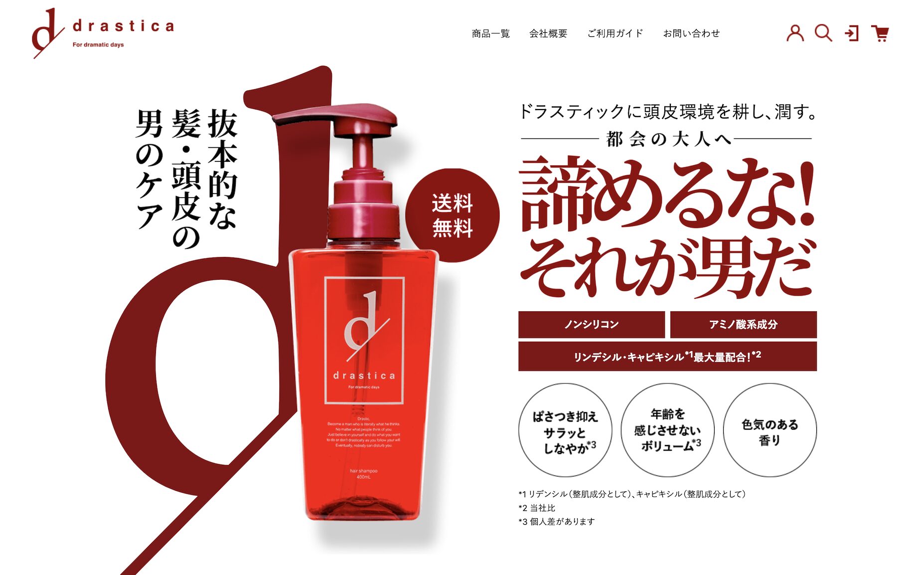 ドラスティカは男性向けに開発された、13種類のアミノ酸成分を使用したシャンプーです。