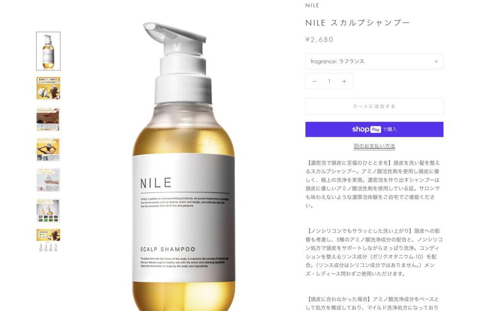 NILE 濃密泡スカルプシャンプーはアミノ酸活性剤を使用し頭皮に優しく、極上の洗浄を実現しています。