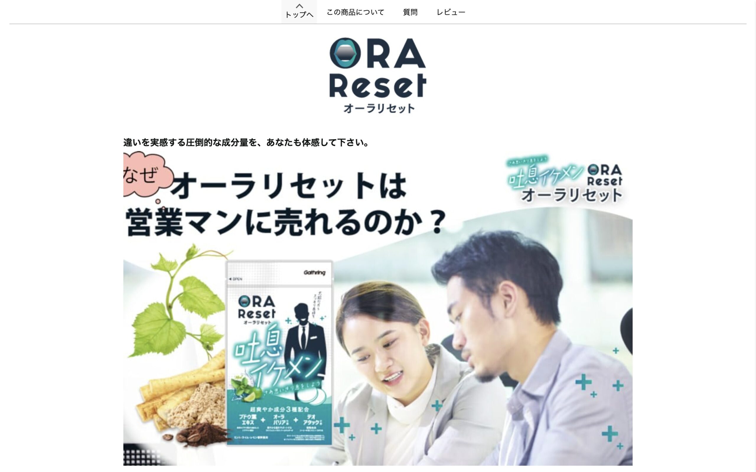 | 特徴 | 化学消臭と中和消臭のW消臭 | なた豆成分がサプリで摂れる | デオアタック、オーラバリア、ブドウ葉エキスの3大成分を配合 |