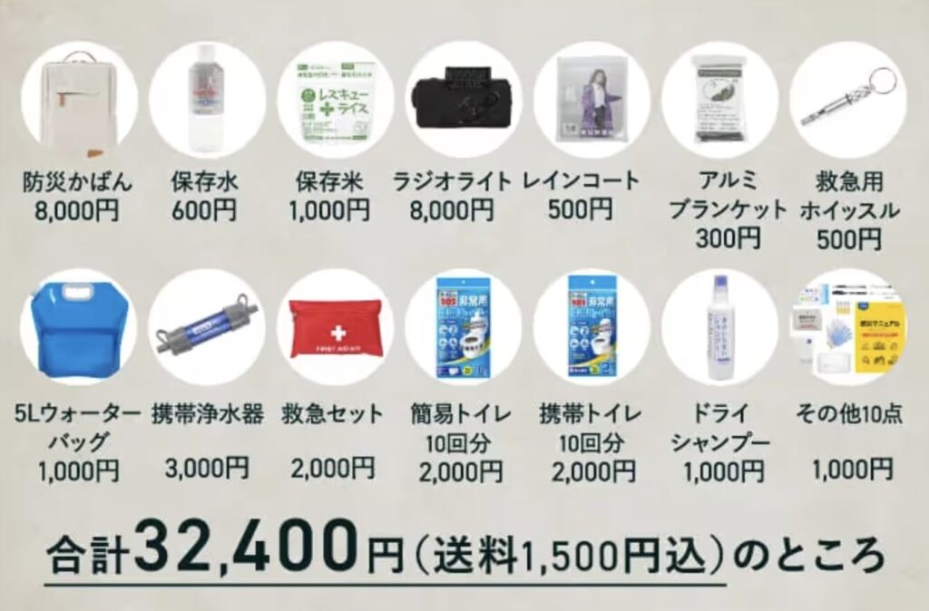 他の防災セットも悩みましたがメーカー直販の専門業者なので品質と量が多くて満足です