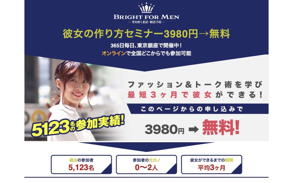 ブライトフォーメンは過去5,000人以上の未婚男性が参加された実績のあるセミナーです。