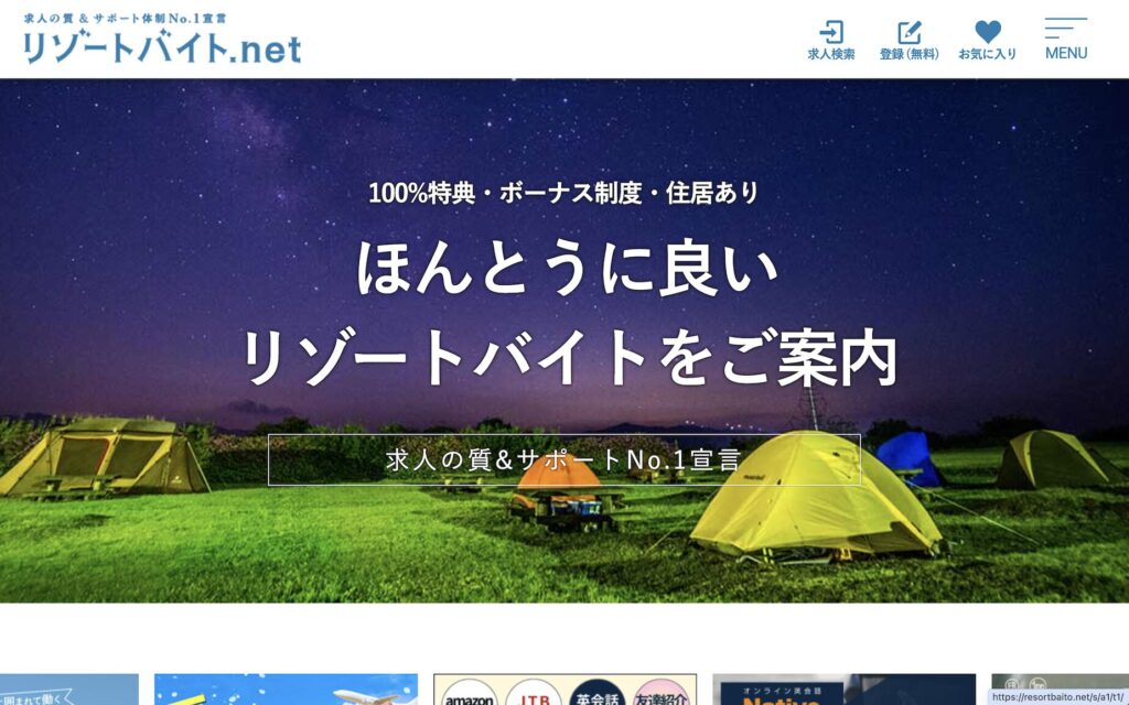 リゾートバイト.netは担当者の対応が良く、質の良いホワイト求人を紹介してくれます。